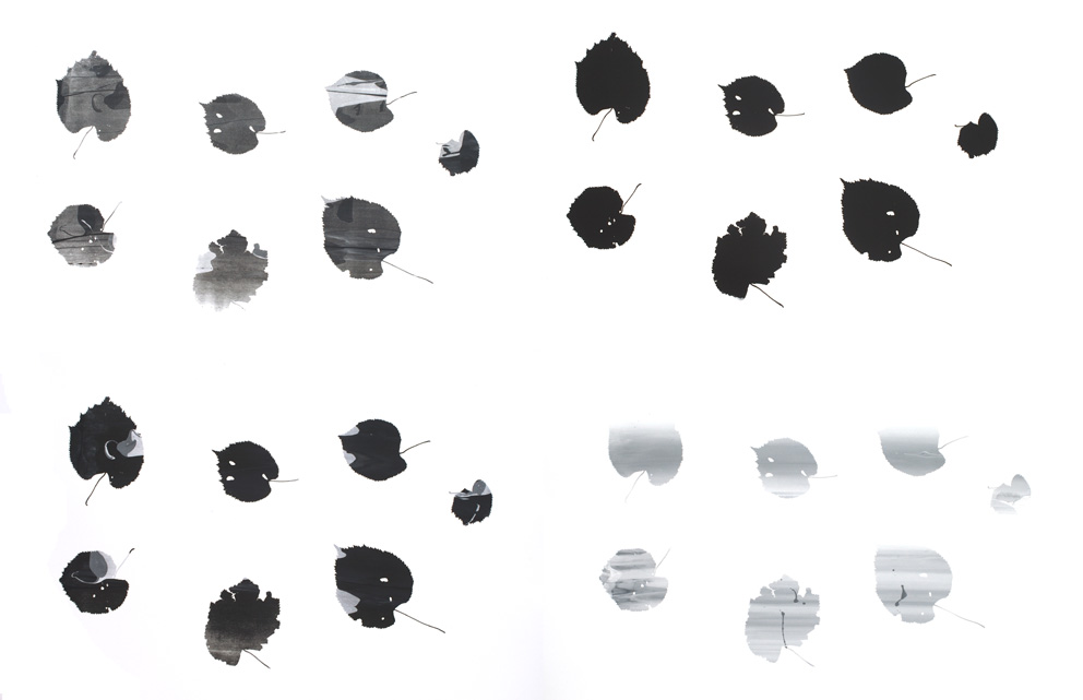 screen prints of lime leaves, format 4 x 50 x 70 cm.