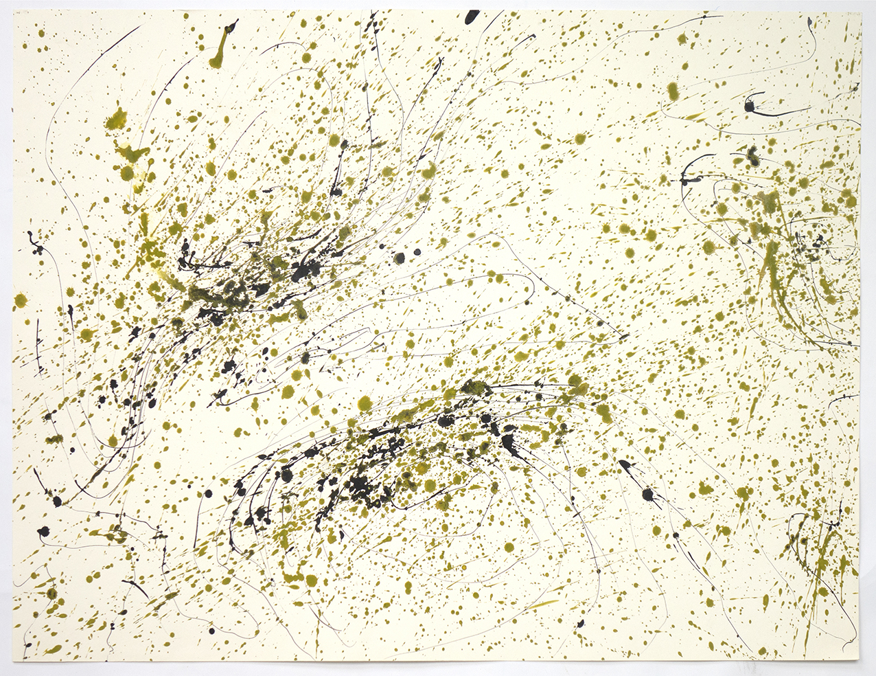inkt en acryl verf , formaat 3 maal 100 x 75 cm.