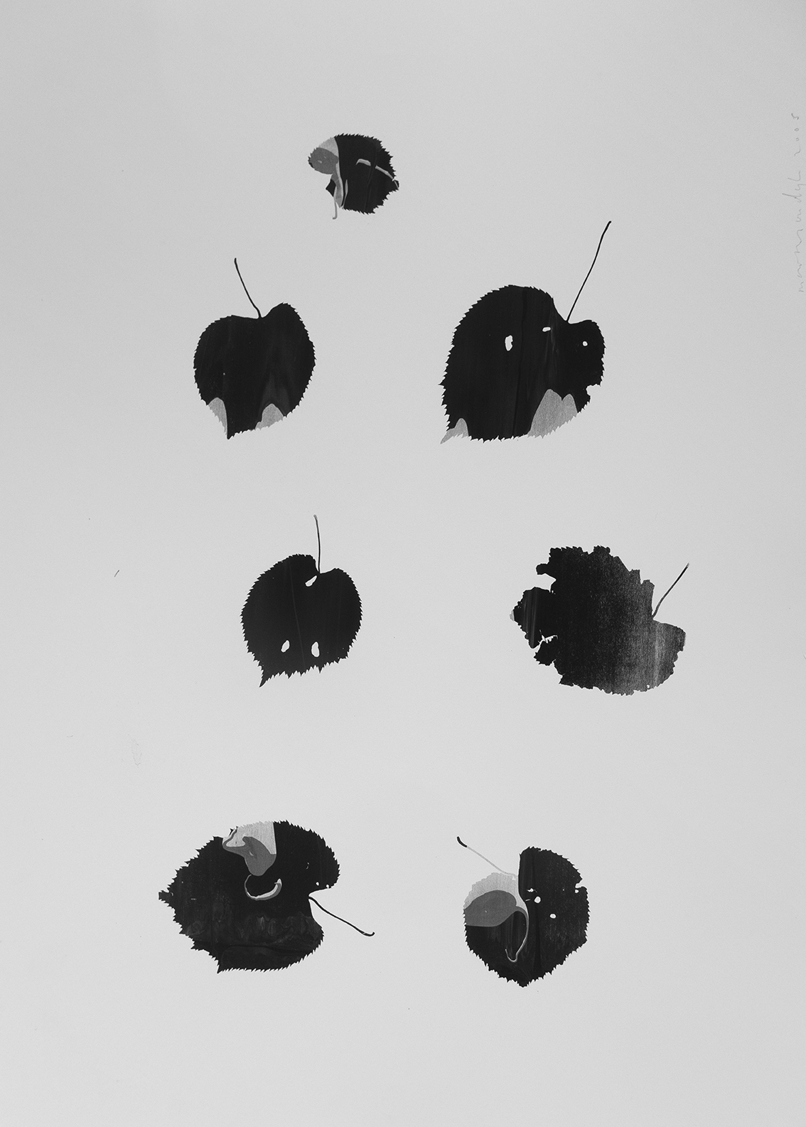 zeefdruk van de linde bladeren, formaat 3 x 50 x 70 cm.