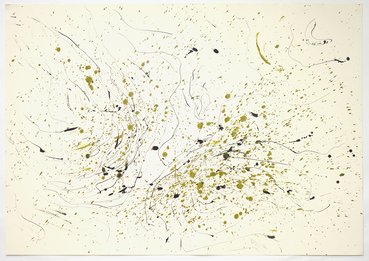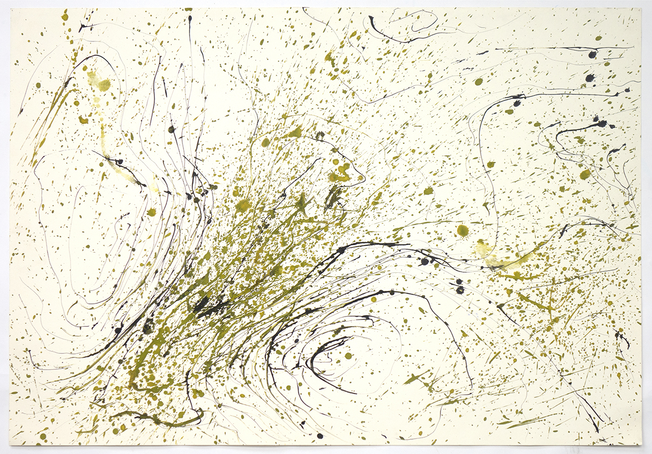 inkt en acryl verf , formaat 3 maal 100 x 75 cm.