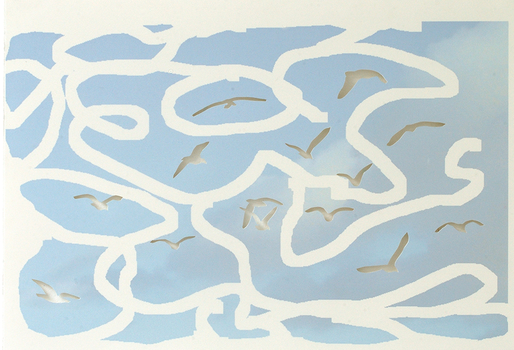 computerprint en uitsnijdingen op en in papier, formaat 76 x 56 cm.