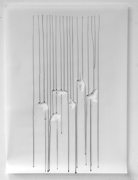 inkt en uitsnijdingen op en in polyester papier, formaat 90 x 126 cm.